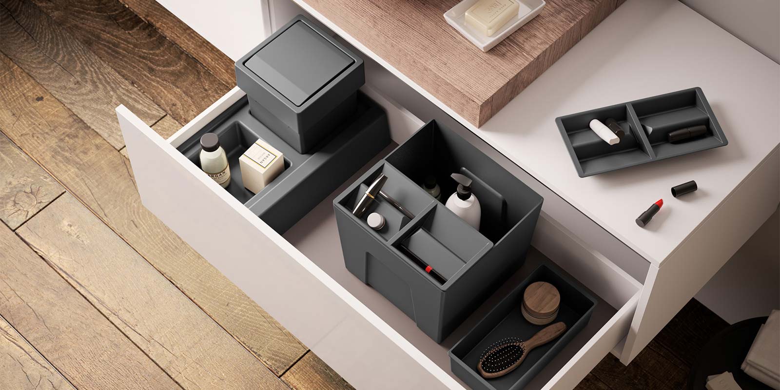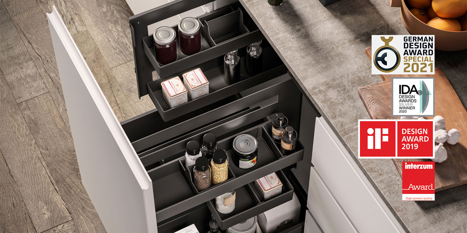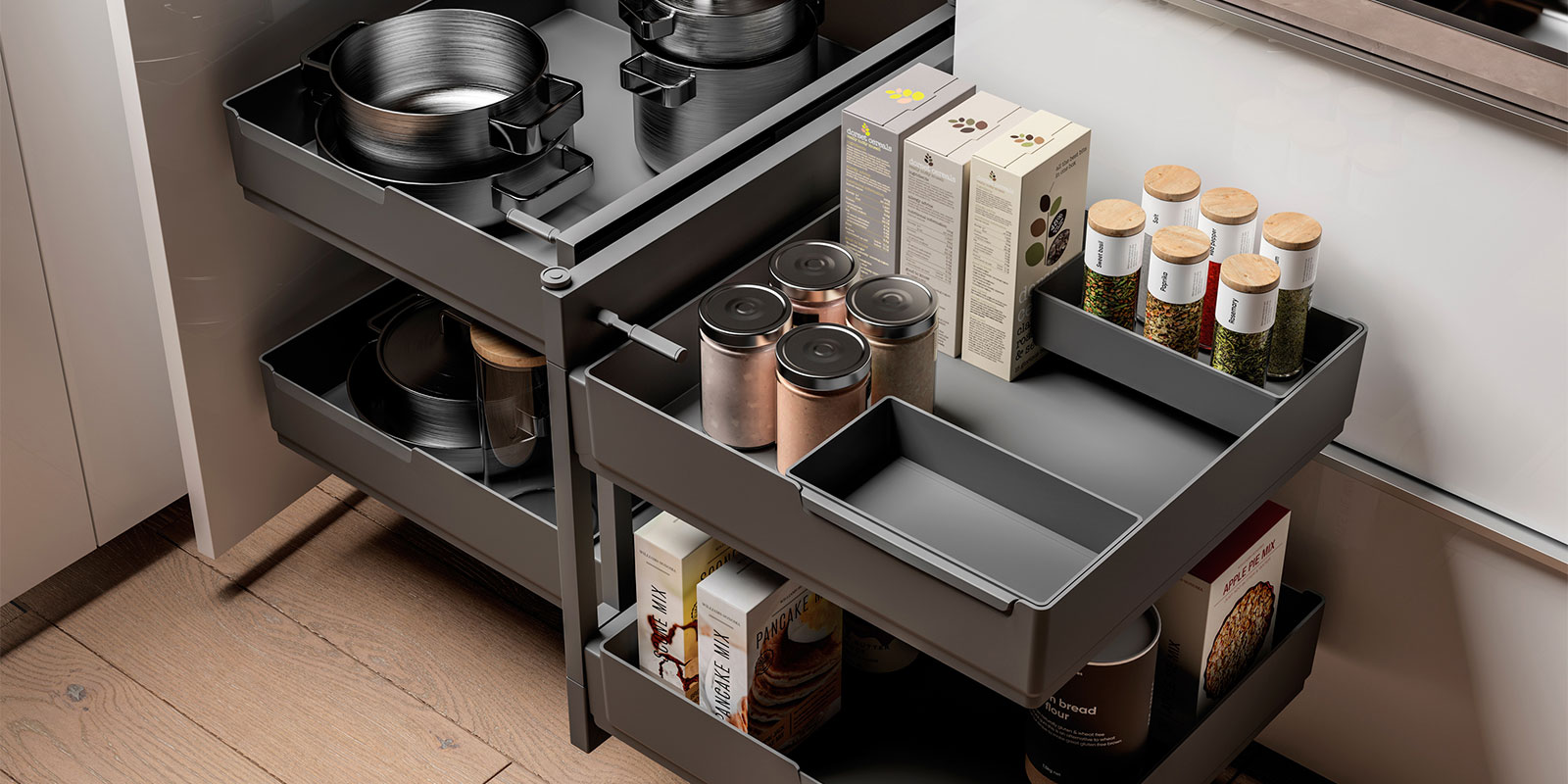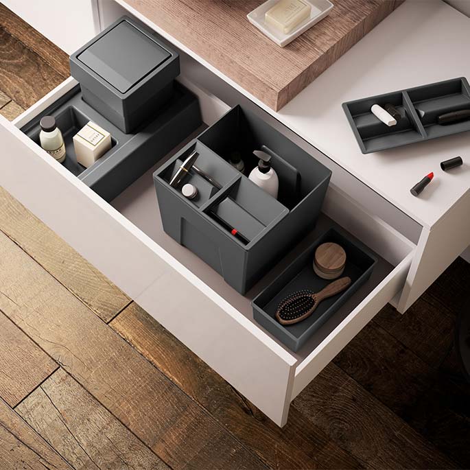 Produciamo un’ampia varietà di ACCESSORI DA INCASSO PER CUCINA, che spaziano da raccoglitori a portaposate, da scolapiatti a organizzatori di spazio. I nostri prodotti sono disegnati appositamente per adattarsi a mobili da cucina e cassetti di clienti in tutto il mondo.