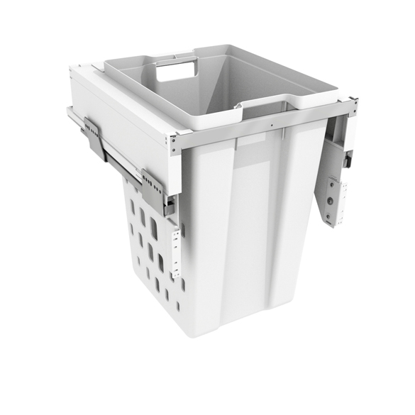 Pull-out extraction linen collector with suspended bins.