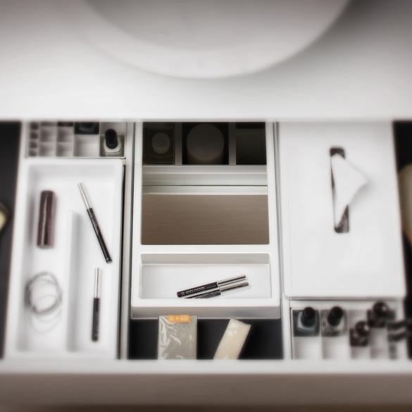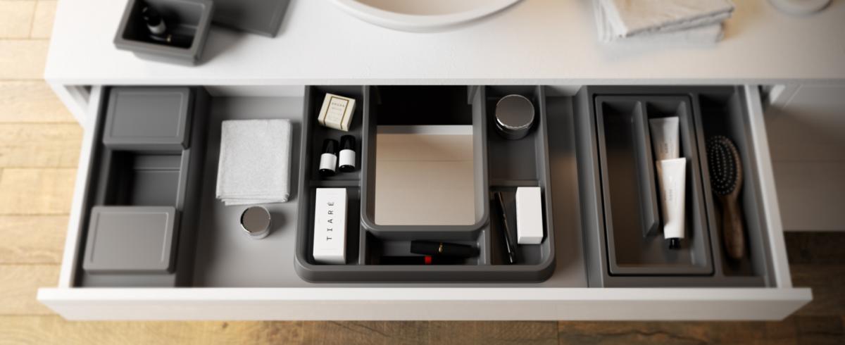 The undersink elements are available in two depths and also in a version with a small storage tray.