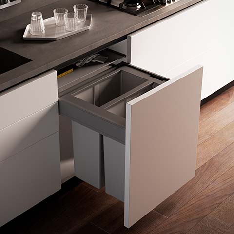 Caractérisés par une grande fonctionnalité et facilité d’utilisation, spécialement conçus pour simplifier la collecte sélective même dans les espaces les plus réduits. Pratiques, élégants, robustes: indispensables en cuisine.