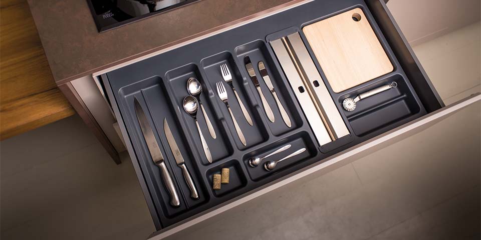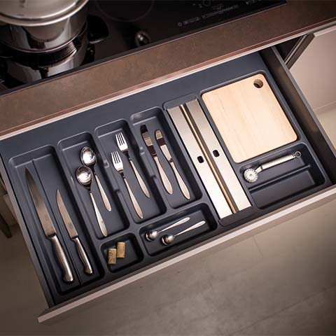 Des géométries soigneusement étudiées donnent naissance à des systèmes parfaits, permettant d'organiser le tiroir des couverts.
