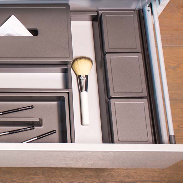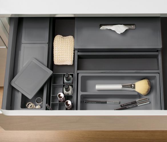 Les accessoires pour tiroir Collection ONDA sont idéales pour organiser au mieux les espaces des tiroirs pour meubles salle da bains.