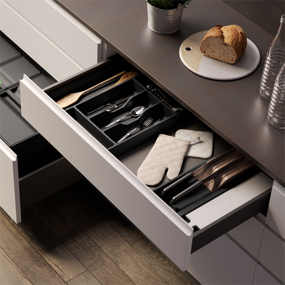 La possibilité d’accessoiriser les modules avec range-couteaux et planche à découper font de Combi une ligne encore plus fonctionnelle.