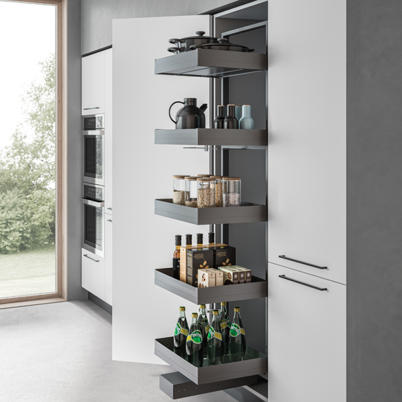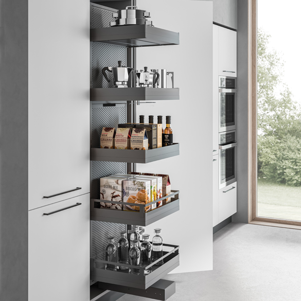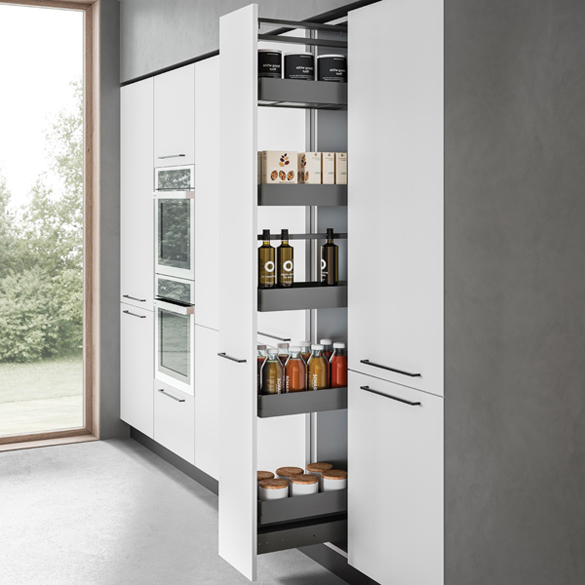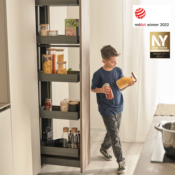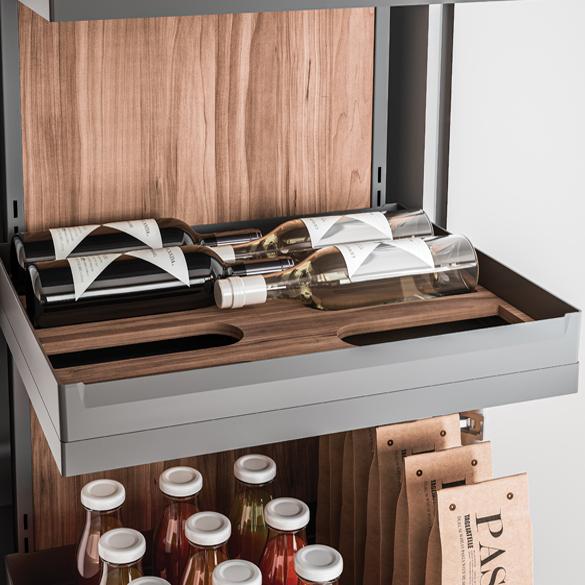 La gamme Sous-Chef de Gollinucci, qui a dejà reçu de nombreux prix, s'enrichit aujourd'hui avec Sous-Chef High, une série de nouveaux accessoires conçus pour les meubles colonnes de la cuisine. Sous-Chef High se décline en plusieurs modèles, finitions et options. L'utilisation de bacs en résine spacieux et élégants revêt une importance particulière, vu qu'ils représentent un trait distinctif de toute la ligne Sous-Chef.Les colonnes peuvent être équipées de pièces en bois ou bien en métal. Ce qui est fascinant, c’est la possibilité d'ajouter des lumières à l'intérieur de la colonne en combinaison avec des panneaux arrière spéciaux en tôle qui exaltent l'élégance et la rigueur des lignes.