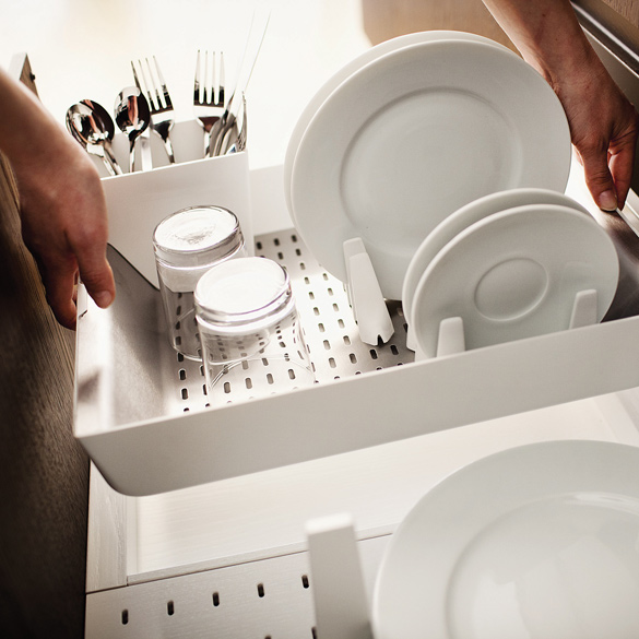 Le plateau-égouttoir est amovible et utilisable assui bien dans le tiroir que sur le top de la cuisine pour une meilleure organisation quotidienne.