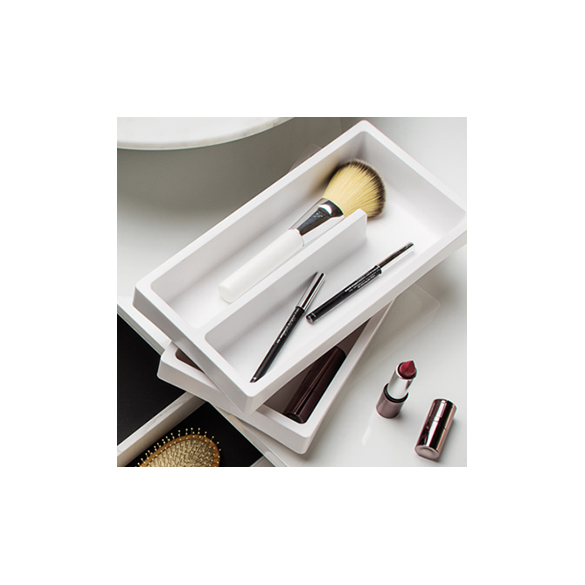 Comoda vaschetta portatrucchi ideale per contenere pennelli, ombretti, e altri accessori per il trucco.